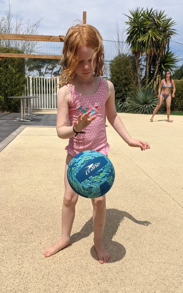 Die neuste Herausforderung war es, so oft wie möglich den Ball zu prellen. Amelie und Finn schaffen beide ca. 600 mal. Gegen Nachmittag sind Sandra, Ivana, Mila und Amelie noch zu Fuß über den Strand nach Vias-Plage zum Shoppen gelaufen. Amelie und Mila waren ganz stolz, dass sie sich das gleich Kleid ausgesucht hatten.