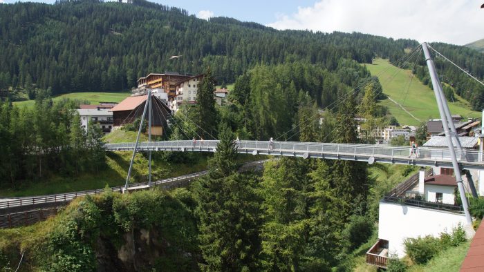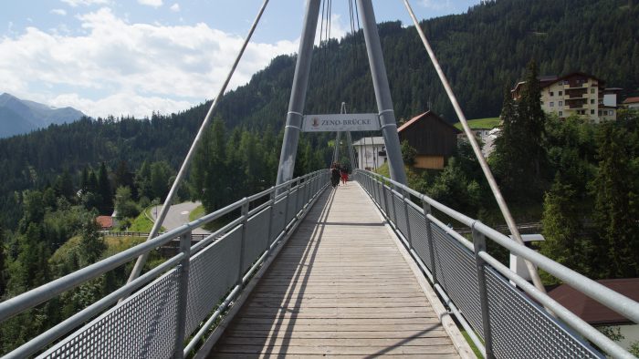 Hier sind wir über die Zeno-Brücke gelaufen. Das ist eine Fußgänger-Hängebrücke.