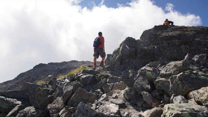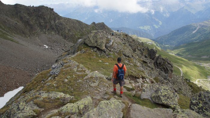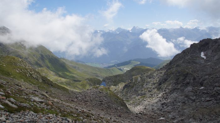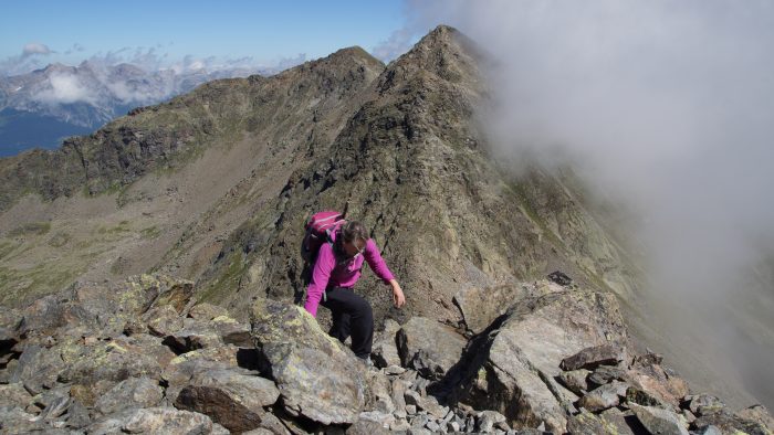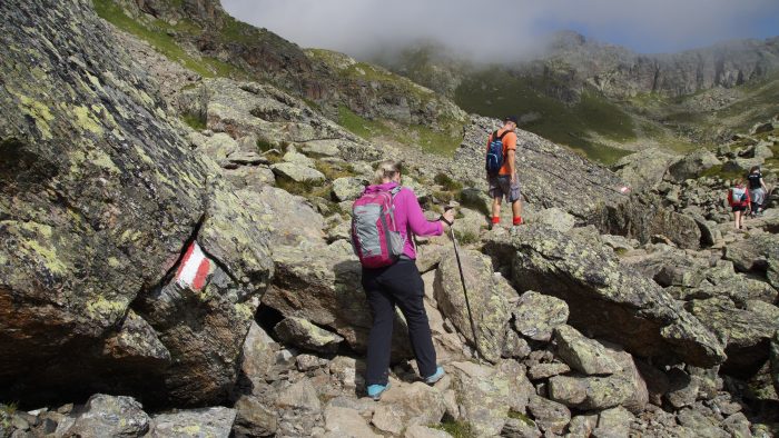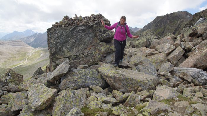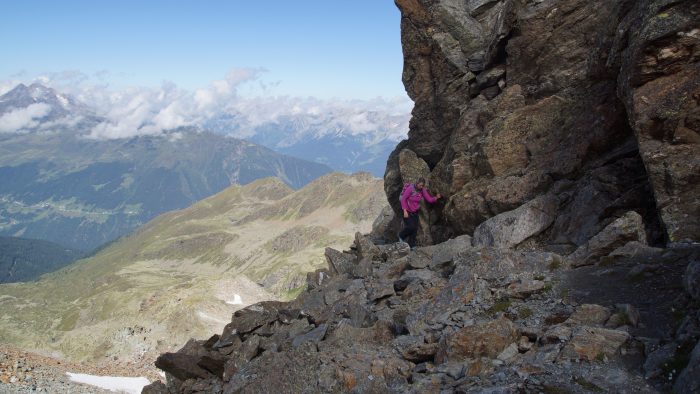 Von hier aus ging es jetzt so richtig in den Aufstieg zum Furgler. Ein steiler Pfad, der nun auch immer steiniger und felsiger wurde, führte uns hinauf zum Furglerjoch auf 2.748 m.