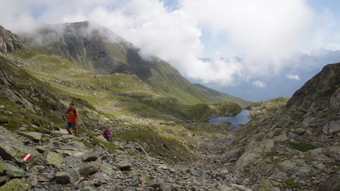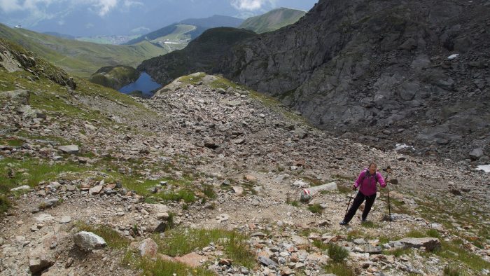 Nach den üblichen Gipfelfotos ging es auf der anderen Seite wieder hinunter, die durchaus einfacher war als der Aufstieg. Zunächst über ein Geröllfeld und dann über einen schönen Wanderpfad ging es steil hinab zum Tieftalsee.