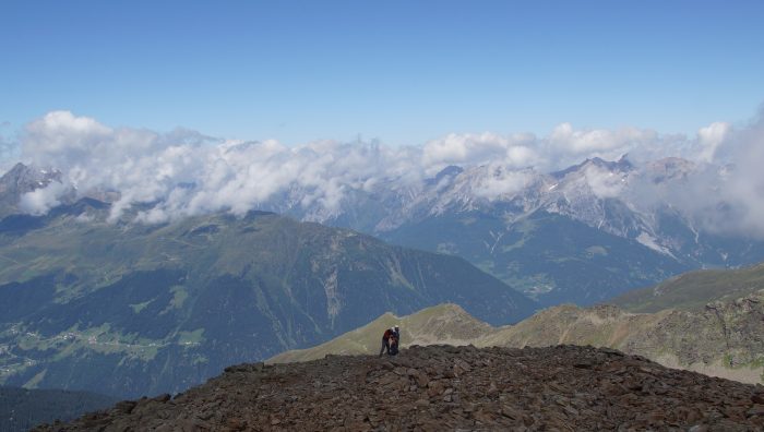 Da heute der schönste Tag der Woche war, waren dementsprechend viele Wanderer heute auf dem Furgler. Aber auf dem Gipfel war genug Platz für alle. Hier konnten wir uns erstmal vom Aufstieg stärken bevor wir die Aussicht in vollen Zügen genießen konnten.