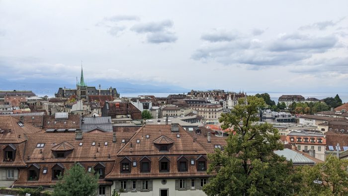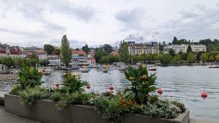 Am Hafen war dann auch genug Flächen, wo die Kinder rumtoben konnten. Außerdem konnten wir in den Genfersee spucken und trotz des trüben Wetters die schöne Aussicht genießen.