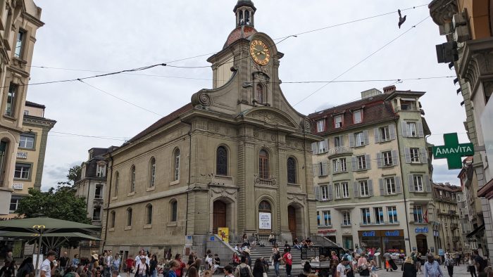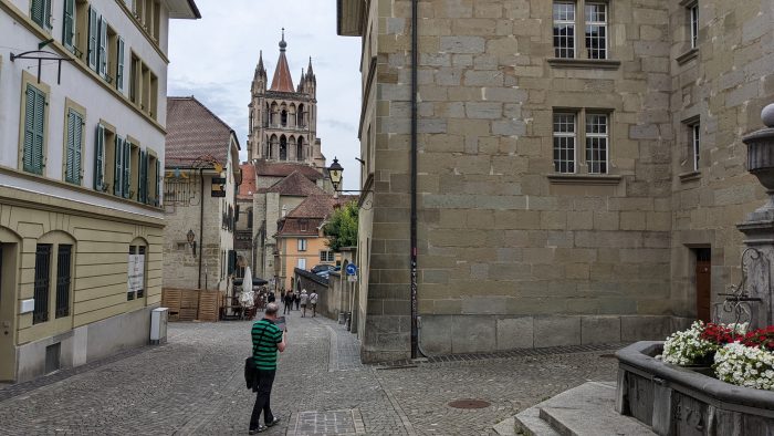 Ulrike hatte heute die gute Idee, dass wir dem schlechten Wetter etwas entfliehen und uns Lausanne angucken. Gesagt, getan… Nach dem Frühstück haben wir die uns fertig gemacht und sind mit zwei Autos etwas mehr als eine Stunde nach Lausanne am Genfersee gefahren. Treffpunkt war der Eingang der Kathedrale Notre-Dame. Wir konnten relativ schnell unser Auto in einem nahgelegenen Parkhaus abstellen und waren etwas vor dem Wennigser Auto mit Oma und Opa an der Kathedrale. die Kathedrale von Lausanne liegt oben am Berg und von hier hatten wir einen tollen Blick über die Stadt bis hinunter zum Genfersee.
