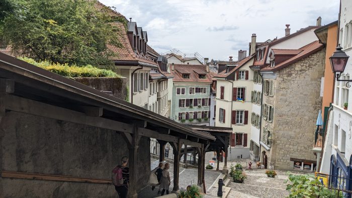 Die Stadt Lausanne liegt direkt am Berg und um in die Altstadt zu kommen mussten wir einige Treppen hinunterlaufen. Hier sind wir durch die Gassen geschlendert immer auf der Suche nach Souvenirs für die Kinder. Oma und Opa hatten am Anfang des Urlaubs jedem Enkelkind 20 CHF geschenkt, um sich davon etwas zu kaufen.
