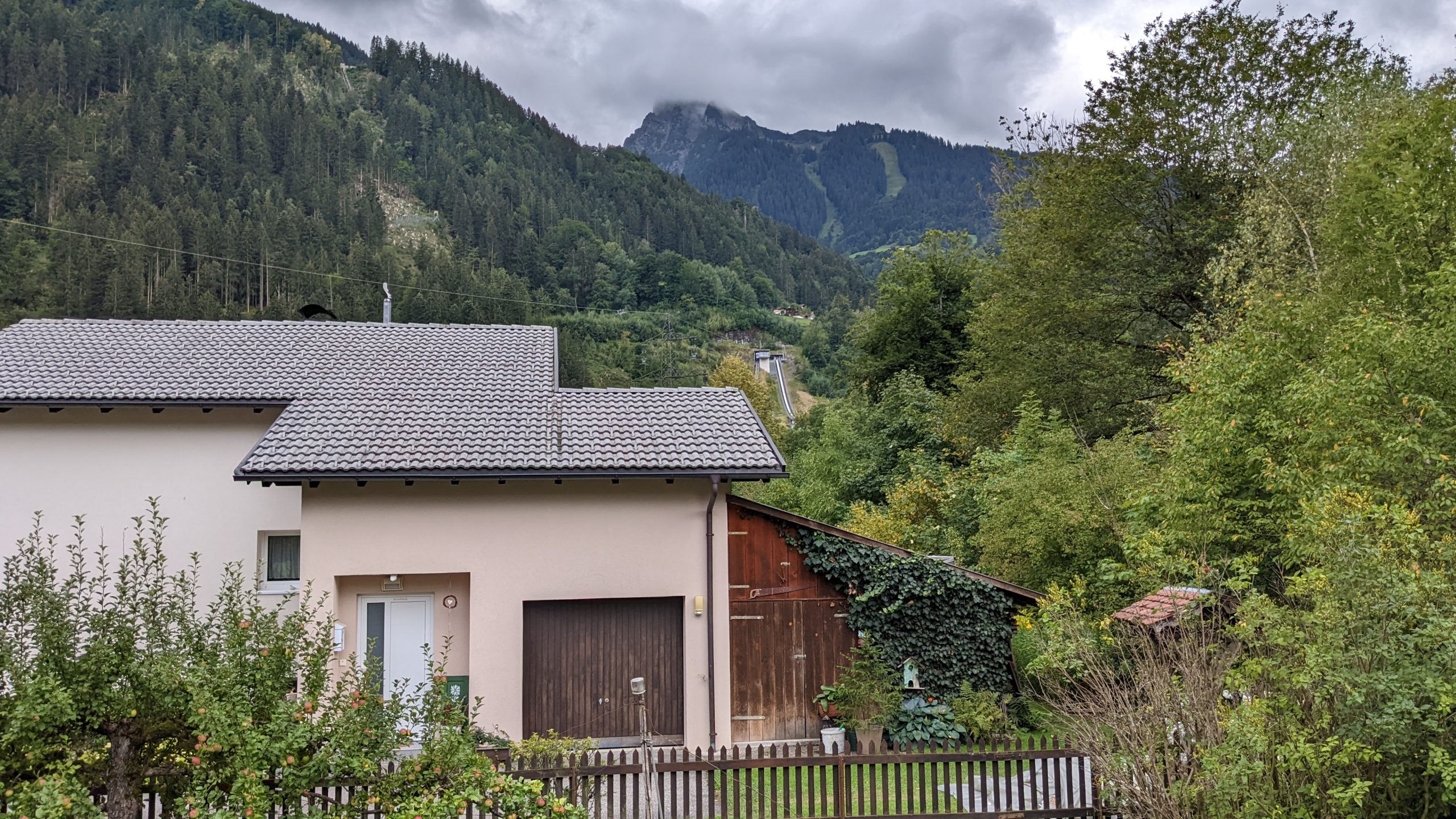 Bei der Fahrt regnete es immer wieder ziemlich heftig aber wir kamen insgesamt gut durch. Gegen 15 Uhr waren wir in unserem Ferienhaus in Tschagguns im Montafon. Nachdem wir alles ausgepackt hatten und die Zimmer bezogen hatten, sind wir noch schnell zum Einkaufen gefahren. Als wir wieder zurück am Ferienhaus waren, waren auch die drei anderen aus Ettlingen da.