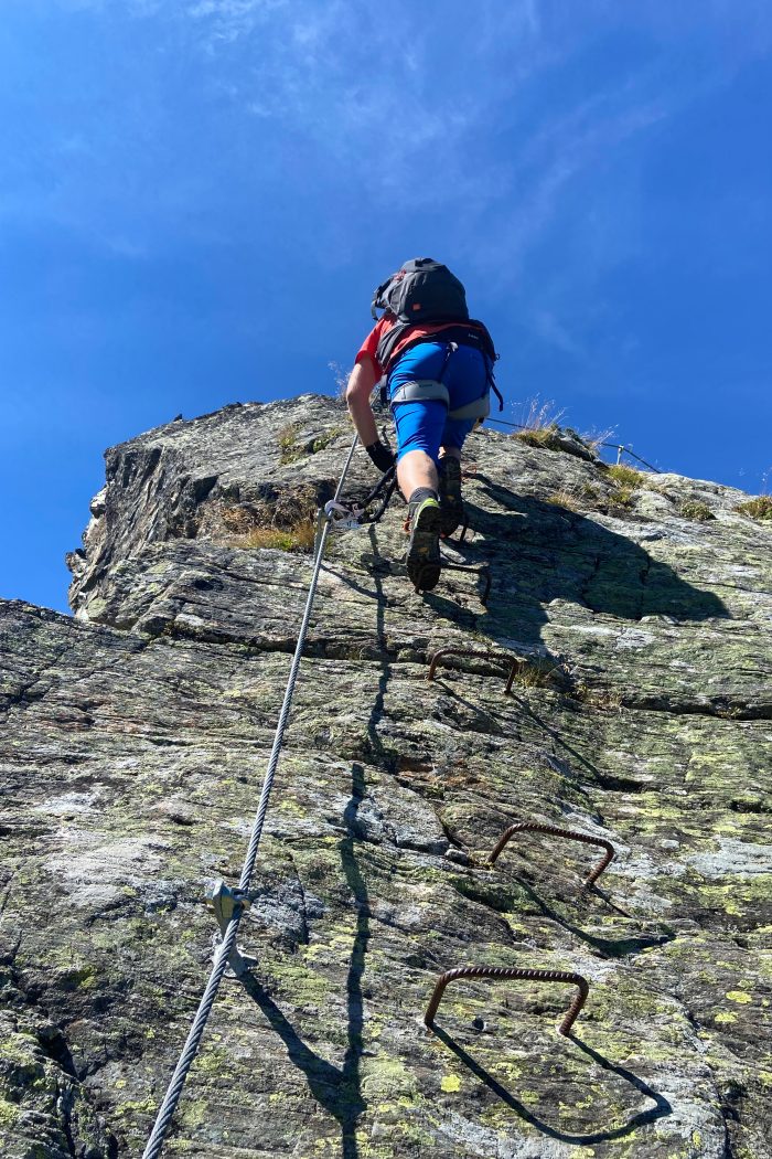 Der Klettersteig hielt was er versprochen hatte und war ein richtiger Genussklettersteig. Die Schwierigkeit hielt sich in Grenzen, was für uns beide aber auch völlig ok war. Die Aussichten auf Berge und das Montafontal waren atemberaubend.