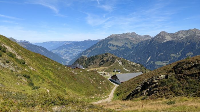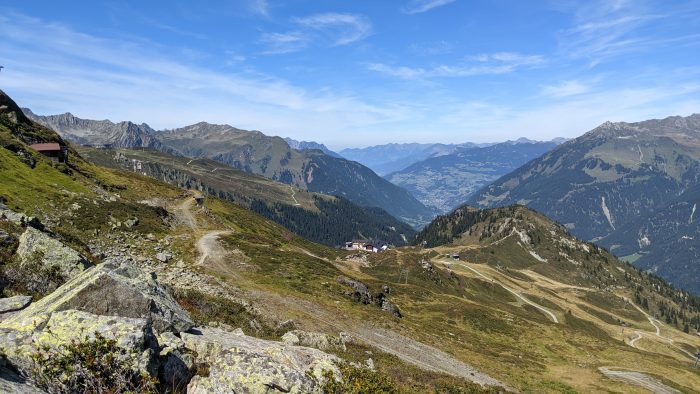 Nach dem Frühstück haben Sandra und ich die Kletterausrüstung gepackt und dann ging es auch schon mit dem Auto los in Richtung Gaschurn. Das Auto konnten wir auf dem Parkplatz der Talstation abstellen und kurze Zeit später saßen wir in der Gondel der Versettla Bahn hinauf zum Bergrestaurant Nova Stoba.