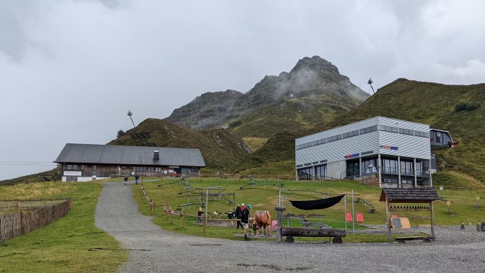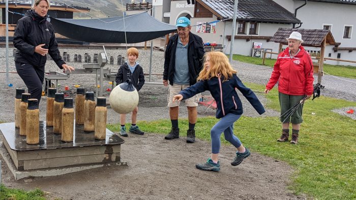 Wie bei fast allen Gondelstationen in Österreich war auch hier einiges für die Kinder geboten. So konnten wir Schafe streicheln und auf dem Spielplatz kegeln.