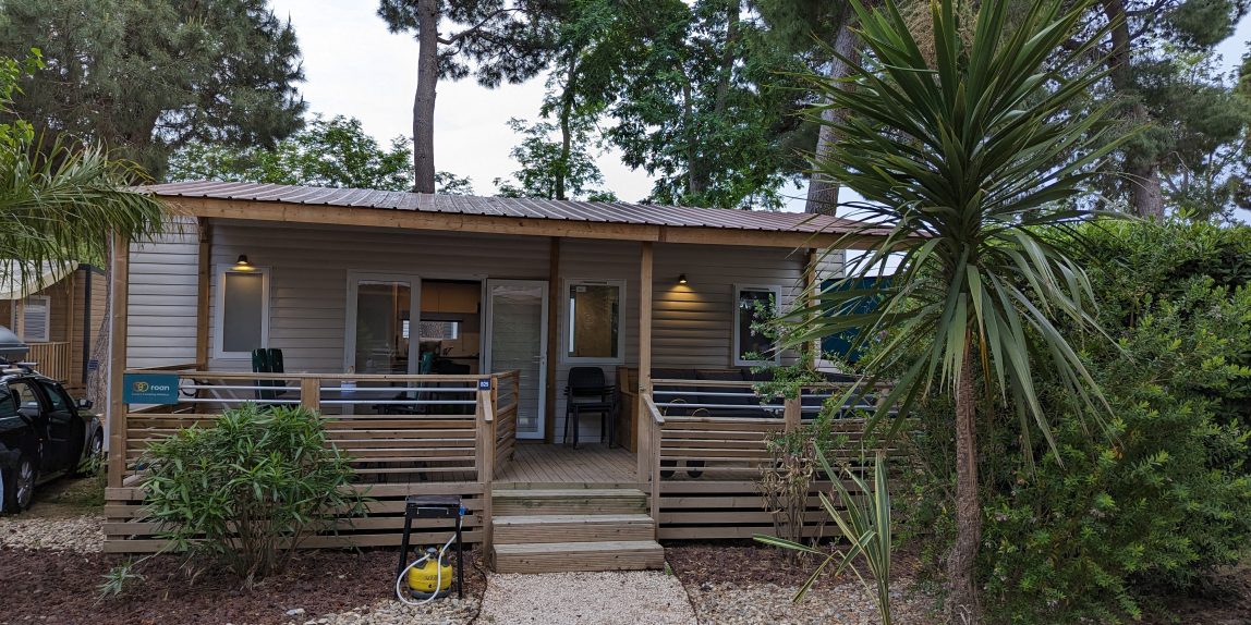 Unser Mobilehome ist klasse. Wir haben eine riesige Terrasse mit einem schönen Tisch und einer Sitzlounge. Auch innen ist das Mobilehome super eingerichtet, Amelie und Finn haben ihr eigenes kleines Zimmer und wir alle haben genug Platz.