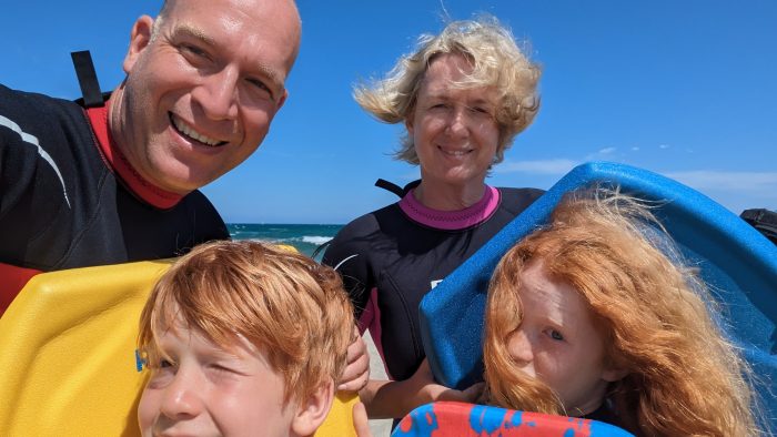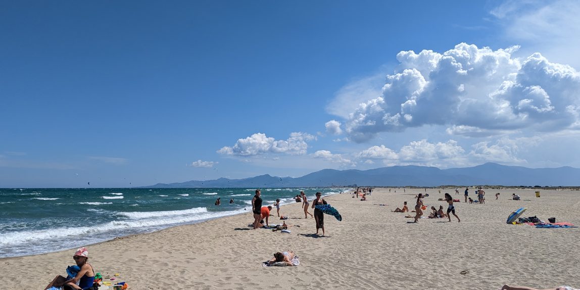 Gegen Nachmittag sind die Farkes und Zillys wieder zum Surfen an den Etang gefahren. Da es heute auch etwas windiger war, wollten wir mit den Bodyboards an den Strand von Canet-en-Roussillon fahren. Die Standmuschel war schnell am Strand aufgebaut und die Neoprenanzüge schnell angezogen, so dass wir uns alle zusammen mit den Bodyboards in die Wellen stürzen konnten. Vorher musste ich Amelie noch überzeugen, dass keine Quallen da waren. Die wirklich nur sehr vereinzelten herumschwimmenden kleinen weißen Quallen haben ich dabei absichtlich übersehen.