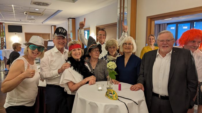 Die Feier war sehr unterhaltsam und es war wirklich toll so viele Verwandte und Bekannte wiederzusehen. Es wurde getanzt, Reden gehalten, Fotos und Videos aus dem Leben von Oma und Opa gezeigt und lustige Verkleidefotos geschossen. Auch für die Kinder gab es genug Ablenkung, so dass ich überzeugt bin, dass alle die Feier sehr genossen haben. Und vielleicht bleibt jedem die „Lösungsfindungszuversichtskompetenz“ aus meiner Rede in nachhaltiger Erinnerung.
