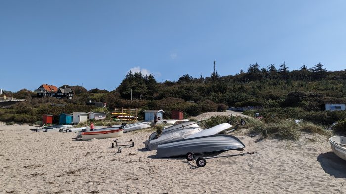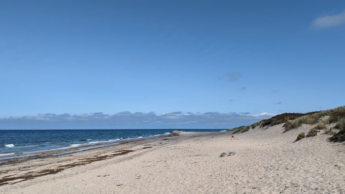 Heute habe wir es tatsächlich geschafft bis fast 9:30 Uhr zu schlafen. Den Vormittag haben wir wieder ganz gemütlich hier im Ferienhaus verbracht. Dann habe wir aber die Strandsachen gepackt und sind zum Strand von Tisvildeleje gefahren. Heute war viel weniger los als am gestrigen Sonntag.