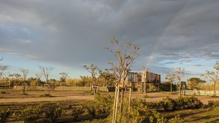 Unser Mobilehome liegt wirklich toll ganz am Ende des Campingplatzes wo auch die Spielstätten für die Kinder sind: Fußball- und Basketballplatz, Kletterpark, Volleyballplatz und ein Minigolfplatz. Von hier sind wir in 2 Minuten direkt am Strand. Der Stand ist hier auch viel besser als vor einem Jahr in Canet-en-Roussilion.