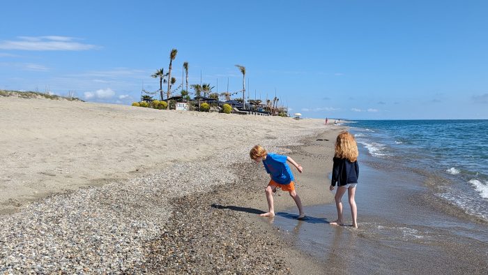 Die erste Nacht haben wir alle tief und fest geschlafen. Die Aufregungen der letzten Wochen sitzen uns allen doch noch ziemlich in den Knochen. Mit Amelie und Finn habe ich am kleinen Laden vom Campingplatz Baguette, Pain au Chocolat und Croissants für das Frühstück gekauft. Nach dem Frühstück bin ich mit den Kindern zum Stand gelaufen, während sich Sandra noch etwas ausgeruht und frisch gemacht hat.