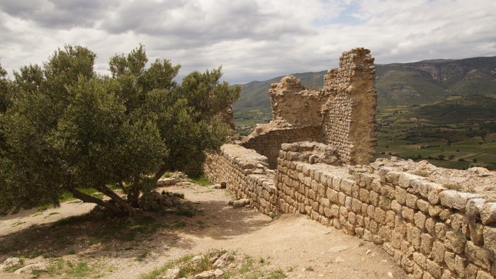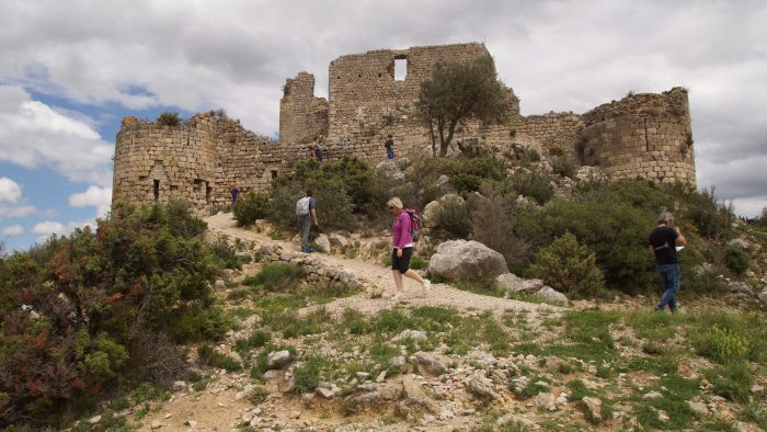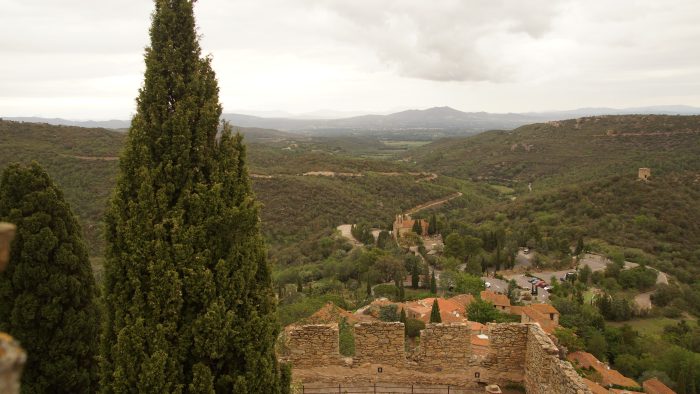 Kurz nach dem Parkplatz mussten wir den Eintritt bezahlen und dann ging es auf einem kleinen Pfad hinauf zu Burg. Die Burg zählt zu den sogenannten Katharerburgen und war ehemals von großer strategischer Bedeutung. Von der Burg auf dem Hügel hatten wir einen spektakulären über die Ebene von Tuchan und die umliegenden Berge. Die Ruine war größtenteils noch recht gut erhalten und im Burghof stand ein prächtiger Olivenbaum.