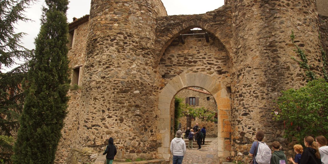 Nachdem wir die Burg ausgiebig erkundet hatten, ging es wieder hinunter auf die befestigten Straßen in Richtung Castelnou. Castelnou ist ein mittelalterliches Dorf aus Natursteinhäusern, die sich unterhalb eine ehemaligen Burg der Herzöge des Vallespir an die Flanke eines Hügels schmiegen. Bei der Anfahrt von Thuir aus hatten wir von dem Parkplatz aus, bei dem wir gestern wegen des Regens umkehren mussten, einen wunderschönen Blick auf Castelnou.