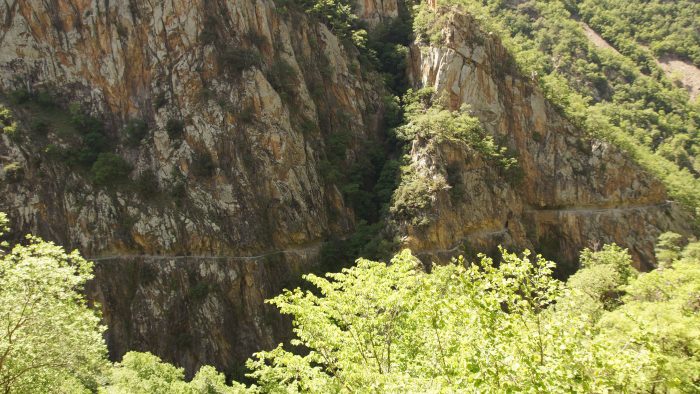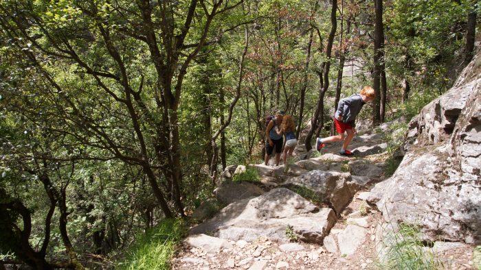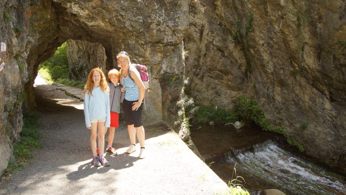 Nach ca. 1:20 h konnten wir unser Auto auf einem Parkplatz am Eingang zur Schlucht abstellen. Da wir fast alle nicht das richtige Schuh- und Sicherungswerk dabei hatten, wollten wir heute mit den Kindern nur einen teil des spektakulären Wanderwegs machen. Der teilweise aus den Felsen herausgesprengte Weg mit seinen Stahlseilen, Hängebrücken und Leitern in einer eigentlich unzugänglichen Schlucht, bietet ansonsten ein stundenlanges sportliches Spektakel. Wir wollten aber nur einen Teil des auch anspruchsvollen Wegs auf der besser zugänglichen Seite der Schlucht begehen.