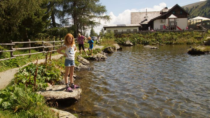Nachdem alle Einkäufe in unserem Ferienhaus verstaut waren, haben wir uns zu Fuß den Berg noch etwas hinauf zum Falktertsee gemacht. Der Falkertsee liegt am Ende der Bergstraße. Im Winter liegt hier ein sehr kleines und beschauliches Kinderskigebiet. Bekannt ist der Falkertsee durch die Heidi-Alm. Eine Hotelbesitzerin hat unzählige Heidi-Figuren in ihr Kinderhotel gebracht und nach ihrer Aussage „Heidi nach Kärnten geholt“. Dadurch begegnet man hier ununterbrochen irgendwelchen Heidi-Figuren und anderem Kitsch.