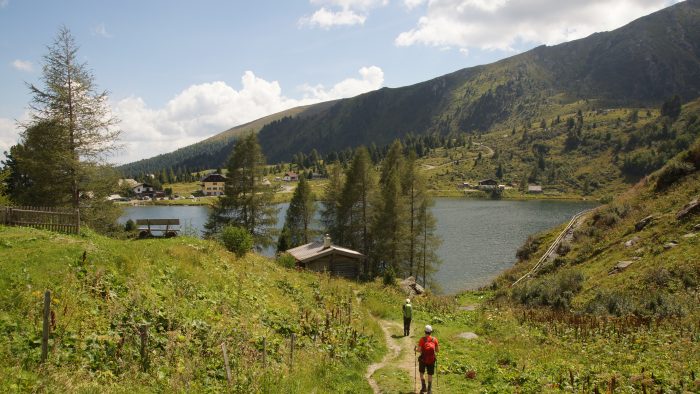 Der Falkertsee liegt eigentlich idyllisch unterhalb von der Falkertspitze. Auch wenn es hier recht beschaulich zugeht, ist der ganze See schon sehr touristisch, da man von den Parkplätzen nur ein paar Meter hierhin gehen muss. Leider konnten wir nicht den kleinen Rundweg um den See laufen, da dieser gesperrt war. Daher sind wir nur auf der offenen Seite den Weg bis zur Sperrung gelaufen.