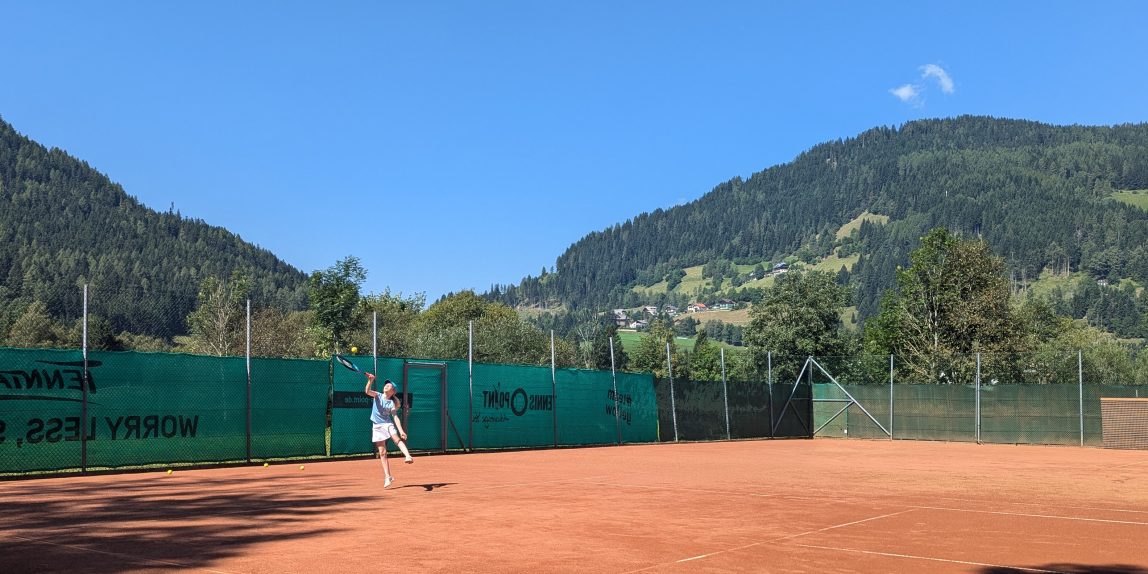 Für heute hatten wir von 11 -13 Uhr Tennisplätze im Tennisclub Patergasse im Tal reserviert. Daher konnten wir erstmal ausschlafen und gemütlich frühstücken. Danach waren die Tennissachen schnell gepackt und um 11 Uhr standen wir auf den zwei Tennisplätzen des Tennisclubs Patergassen. Auf dem einen Feld haben Amelie und Finn gegeneinander gespielt und auf dem anderen Platz Sandra und ich.