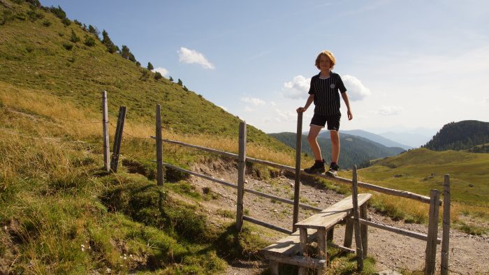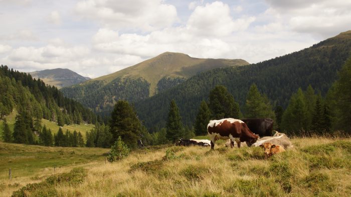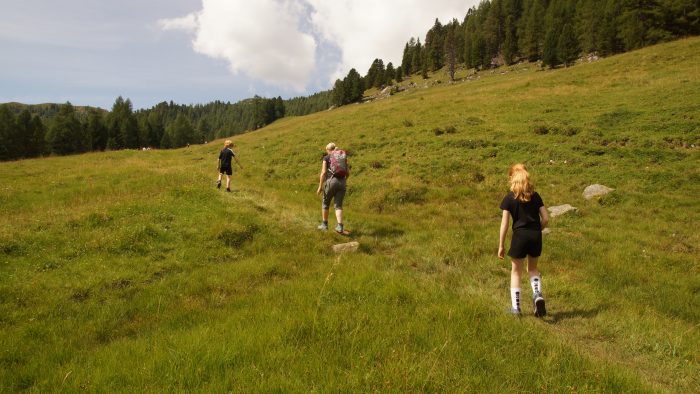 Von der Grundalm ging unser Weg zunächst auf einem Schotterweg in Richtung Wolitzenhütte, den wir aber immer wieder auf einem Wanderweg abkürzen konnten. Kurz vor der Wolizenhütte, bog unser Weg ab auf die Almmatten, den Almwiesen.