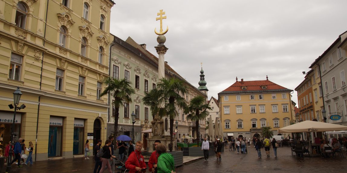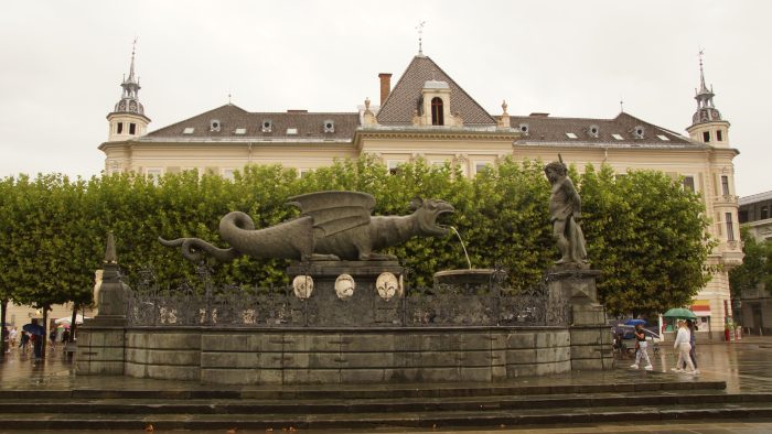 Nach dieser Besichtigung sind wir zum Lindwurmbrunnen auf dem Neuen Platz gegangen. Im Gegensatz zum Alten Platz ist dieser viel großzügiger und moderner. In der Mitte steht ein großer Brunnen mit dem Klagenfurter Wappentier.