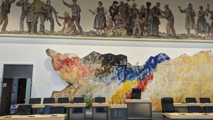 Berühmt ist der große Wappensaal, den wir mit unserer Kärnten Card umsonst besichtigen konnten. Vom Wappensaal durften wir auch direkt in den Sitzungssaal des Kärntner Landtags gehen.