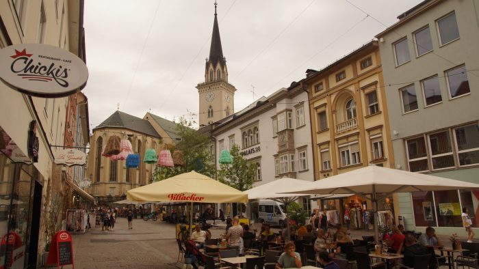 Heute stand die zweite Stadtbesichtigung auf dem Programm. Und zwar wollten wir heute Villach besichtigen, das westlich sowohl vom Ossiacher See als auch vom Wörthersee liegt. Nach dem Frühstück saßen wir dann auch schon im Auto und nach ca. einer Stunde Fahrt konnten wir unser Auto nahe der Altstadt an einer Ladestation abstellen.