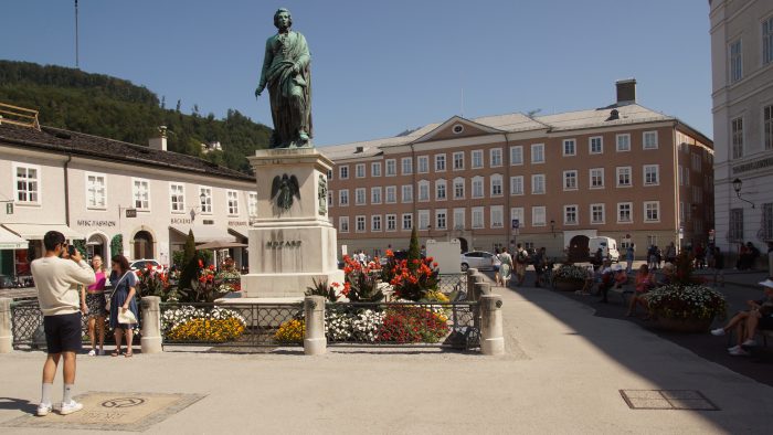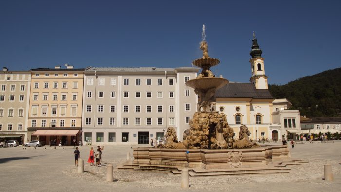 Mit ein bisschen Stau waren wir nach drei Stunden in Salzburg. Unser Auto haben wir in einem Parkhaus im Felsen unterhalb der Festung Hohensalzburg abgestellt und waren schnell in der Altstadt. Dort war vielleicht ein Gewusel, denn wir waren natürlich nicht die einzigen Touristen. Von der Bürgerspitalkirche St. Blasius sind wir durch die Getreidegasse vorbei am Geburtshaus von Mozart über die Judengasse bis zum Mozartplatz gelaufen. Am Mozartplatz haben wir uns bei brütender Hitze in ein Kaffee gesetzt, wo wir uns mit einem Eis oder einer Sachertorte gestärkt haben.