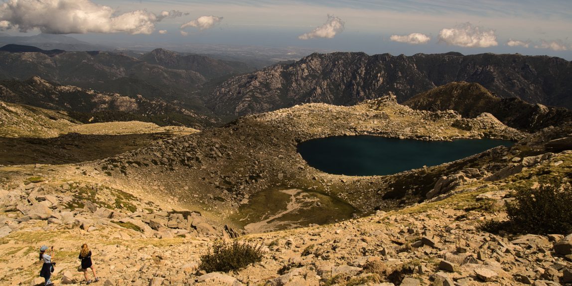 Der Aufstieg war teilweise sehr steil aber wunderschön. Immer wieder konnten wir fantastische Blicke auf die Ostküste von Korsika und die umliegenden Berge genießen. Nach etwas mehr als 400-500 Höhenmeter kamen wir an einem Bergsee unterhalb des Gipfels vorbei, wo wir uns windgeschützt erstmal alle mit einem Picknick gestärkt haben.