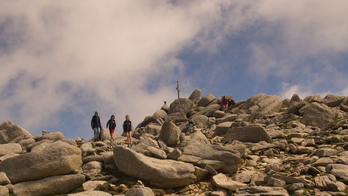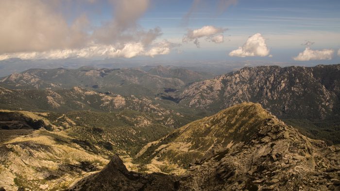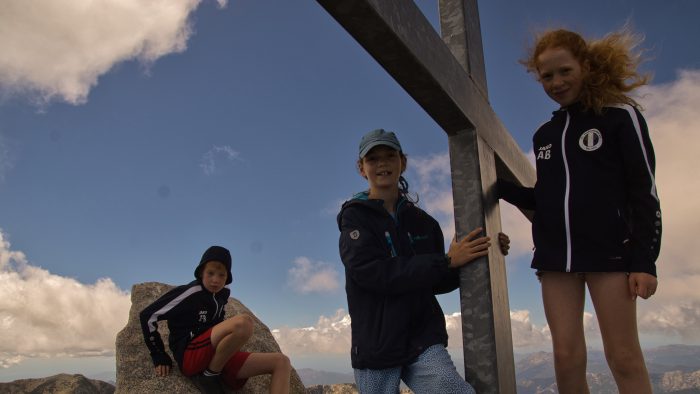 Am Gipfel auf 2.352 m.ü.NN. wehte der kühle Wind natürlich noch stärker. Aber ein Foto am Gipfelkreuz konnten wir uns selbstverständlich nicht entgehen lassen. Auch der Blick ringsherum auf die Berge Korsikas und die Ost- und Westküste waren hier oben atemberaubend.