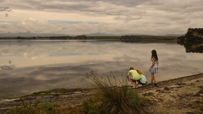 Nach einer Weile bog der Weg aber nach Westen zum See ab. Hier konnten wir die vielen Bojen der Austernzucht beobachten. Am See entlang Richtung Süden führte uns der Weg schließlich zum Parkplatz zurück. Diesmal ist Sandra noch alleine am Strand zurück zum Campingplatz gelaufen, während ich die Kinder alle im Auto zurückgefahren habe.