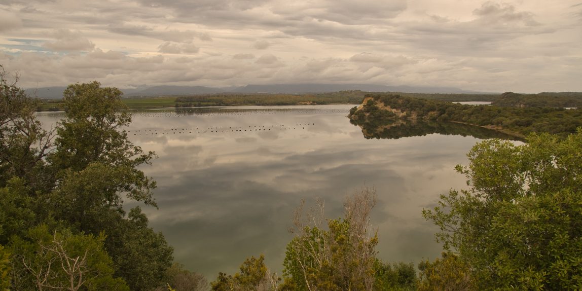 Der See wird überwiegend für die Austerzüchtung genutzt und liegt direkt hinter dem Meer. Zwischen Meer und See gibt es die verschiedensten Wanderwege in unterschiedlichsten Längen. Wir haben uns für einen kleinen ca. 1 1/2 stündigen Rundgang entschieden. Der Wander-Bike-Reit-Weg führte uns zunächst vom Parkplatz Richtung Norden durch die Vegetation zwischen See und Meer. Immer wieder konnten wir dabei auch mal zum Strand laufen, der hier viel einsamer ist, als direkt bei uns am Campingplatz.