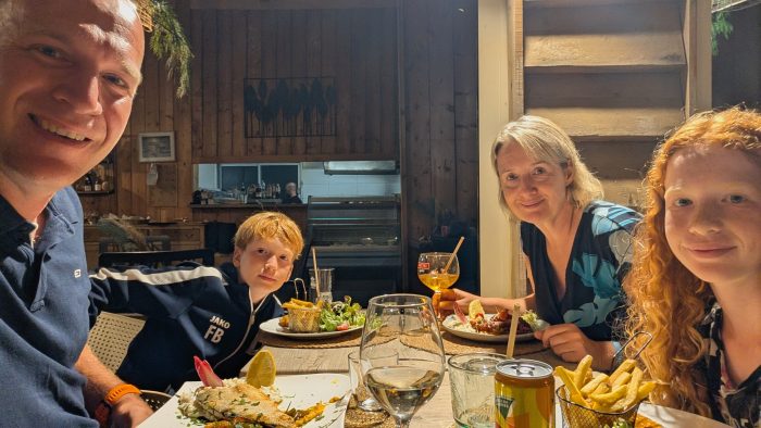 Heute war unser letzter Tag in Aleria auf dem Campingplatz. Den Vormittag haben wir wie meistens damit verbracht lange zu schlafen und ausgiebig zu frühstücken, um dann eine Runde Tennis zu spielen. Danach haben wir noch überlegt einen Ausflug in den kleinen Küstenort Solenzara ca. 30 Minuten südlich von Aleria zu machen, haben uns dann aber dagegen entschieden. Wir wollten alle den Tag ganz in Ruhe am Strand verbringen, was uns auch allen nach den doch sehr schrecklich aufregenden Tagen nach dem Herzinfarkt gut tat.