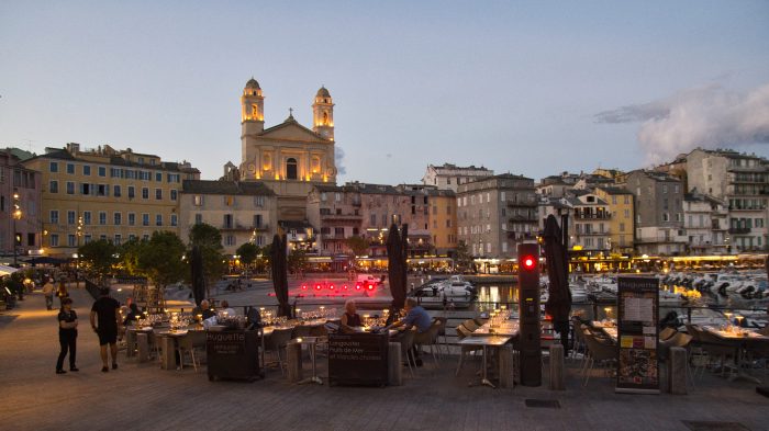 Finn hatte so Hunger und war so entkräftet, dass wir erstmal eine kleine Snack/Kaffeebar suchen mussten, wo wir uns alle etwas stärken konnten. Danach sind wir durch niedliche kleine Gassen hinunter zum Yachthafen gelaufen. Der Yachthafen ist wirklich sehr idyllisch. Auf der einen Seite trohnt die Église Saint Jean-Baptiste mit ihren charakteristischen Zwillingstürmen. Rund um den Hafen reiht sich ein Restaurant und ein Souvenirladen an den anderen. Bastia profitiert enorm von den ganzen Fährverbindungen und den wartenden Passagieren, die sich zur Überbrückung die Stadt anschauen. Ein Gang in die Souvenirläden und eine Stärkung in einem der Restaurants lässt sich dabei ja kaum vermeiden.